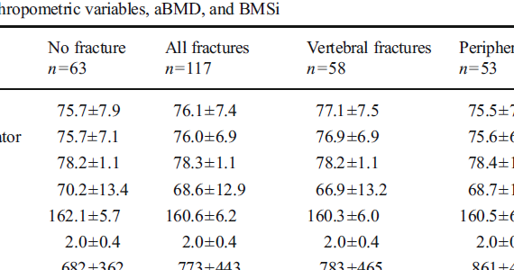 Abstract The aim of the study was to test, whether bone material strength differs between different subtypes of osteoporotic fracture and assess whether it relates to vertebral fracture severity. Cortical bone material strength index (BMSi) was measured by impact microindentation in 66 women with osteoporotic fracture and 66 age- and […]