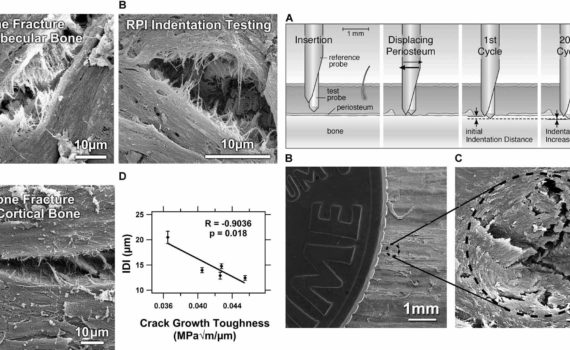 Abstract Bone tissue mechanical properties are deemed a key component of bone strength, but their assessment requires invasive procedures. Here we validate a new instrument, a reference point indentation (RPI) instrument, for measuring these tissue properties in vivo. The RPI instrument performs bone microindentation testing (BMT) by inserting a probe […]